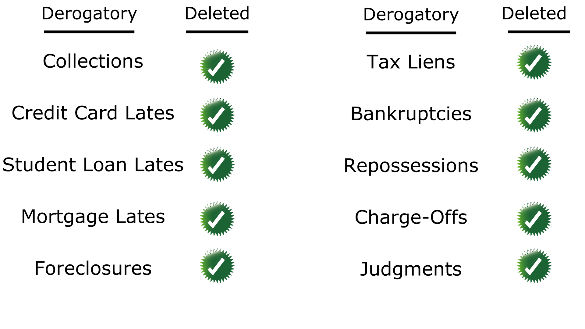 We Can Delete These Derogatory Items From Your Client's Credit Reports: